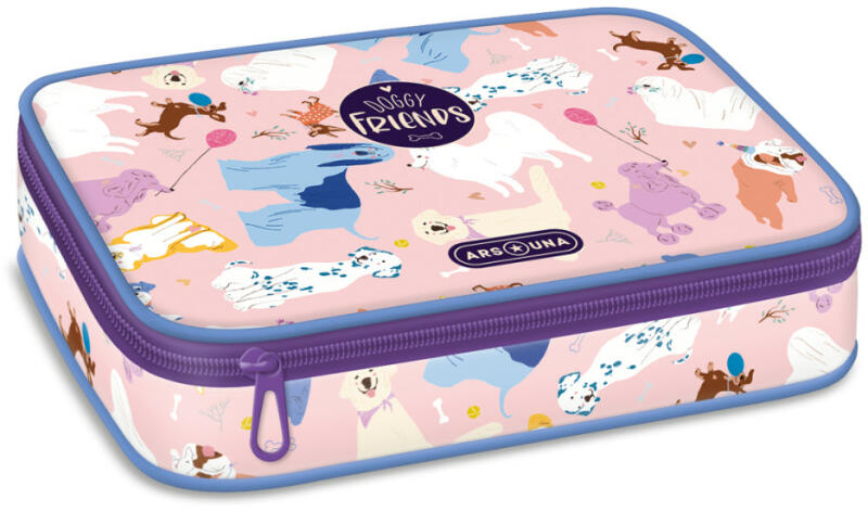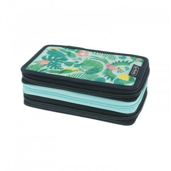 Ez az egyemeletes tolltartó két kihajtható füllel elegendő helyet biztosít az írószereknek (21 kicsi, 3 szélesebb, 2nagy gumis tárhely). Az osztófal átlátszó fóliái mögött órarend vagy akár puska helyezhető el :). A tolltartó bélelt, megvédi az írószereket. Minőségi cipzárral záródik, nagy, ergonomikus fogantyúkkal van ellátva akönnyű manipuláció érdekében. E