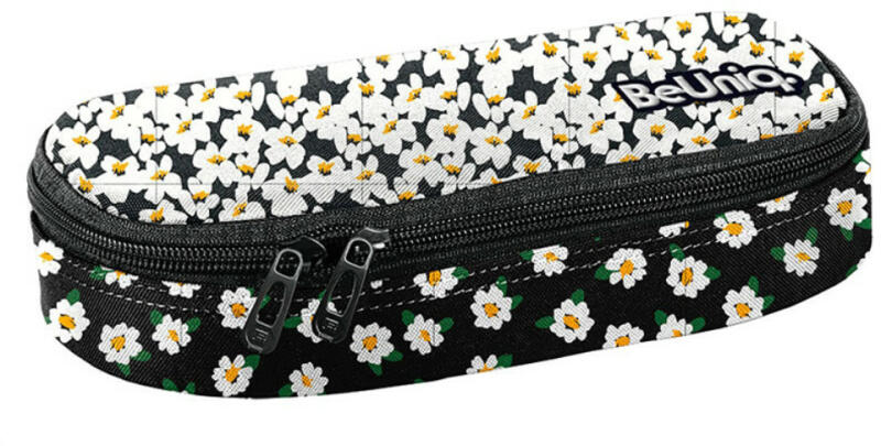 BeUniq ovális tolltartó - fehér virágok (BU24LO-013) belseje egyterű, praktikus cipzáras zseb is található benne, így elfér a tolltartóban az összes írószer, amire az iskolásoknak szüksége van. Cuki, virágos mintájával az iskolatáskák trendi kiegészítője.