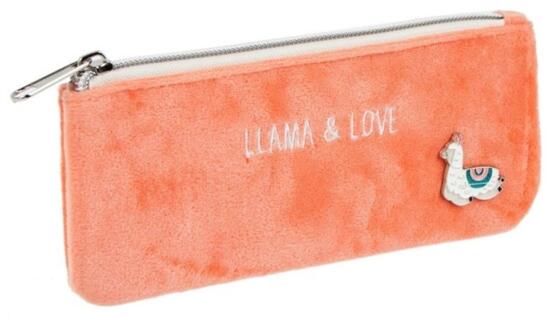 A Szögletes plüss tolltartó - Láma, Love belseje egyterű, sok-sok írószer - ceruza, radír, vonalzó, toll - elfér benne. Az aranyos láma minta és a puha, barack színű plüss anyag igazán csajossá teszi. A tolltartó kozmetikai kis táskaként is kiválóan használható.