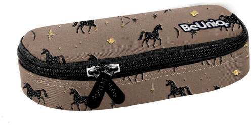 A BeUniq Unikornis ovális tolltartó - Brown belseje egyterű, de egy térelválasztó és gumifülek segítségével rendszerezni tudod benne írószereidet. Az elválasztó egyik oldalán praktikus kis cipzáras zseb is található apróságoknak. Hozzáillő hátizsákkal és tornazsákkal trendi szetted lesz a suliban.