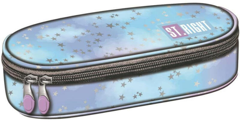 St. Right - Csillagos ovális tolltartó - Pastel Stars (664113) belseje egyterű, praktikus cipzáras zseb is található benne, így elfér a tolltartóban az összes írószer, amire az iskolásoknak szüksége van. Aranyos, csillagos mintájával és pastel színösszeállításával az iskolatáskák trendi kiegészítője.