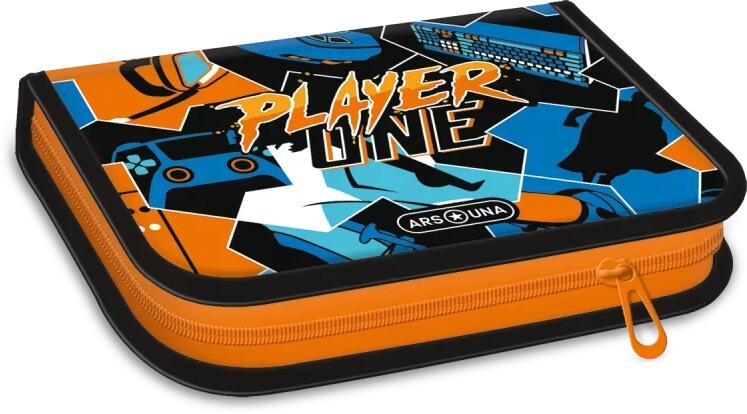 Ars Una töltött tolltartó Player One (5353) 24Írószerekkel töltött cipzáros tolltartó két kihajtható füllel, gumis kialakítással az írószerek tárolásához. Tartalma: 12 db színes ceruza, 3 db HB grafit ceruza, 1 vékony és 1 vastag postairón, 8 db színes filctoll, 1 db radír, 1 db hegyező, 1 db 17 cm-es egyenes vonalzó, 1 db háromszög vonalzó, órarend A és B hétre.