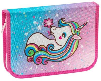 Unikornis tolltartó, 1 cipzáros, klapnis, üres, BELMIL Flying to the stars. Méret: 14 x 20,5 x 3,5 cm Anyag: Poliészter Minőségi egyrészes, cipzáras tolltartó két kihajtható füllel. Rengeteg hely az iskolaszereknek: radírnak, vonalzónak. Órarendtartó ajándék Belmil órarenddel. 3D gumi emblémával vagy részletgazdag applikációval díszítve.