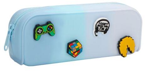 Irodaszer tok a kicsiknek. a tetején csatolt gumi játékikonokkal strapabíró anyagból és 1 cipzárral méret megfelelő gyermek hátizsákokhoz vagy iskolákba. aktatáskák