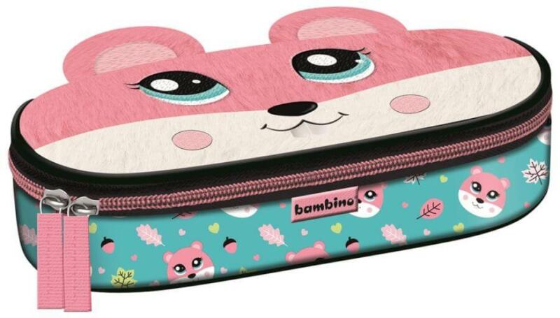 Bambino Premium - Mókusos ovális tolltartó (663710) egyterű belsejében van egy kihajtható fül, melynek egyik oldalán kis cipzáras zseb, másikon gumifülek találhatóak. A tolltartóban elfér az összes írószer, amire az iskolásoknak szüksége van. A cuki mókus mintás tolltartó praktikus kiegészítője a nagylányok iskolatáskájának.