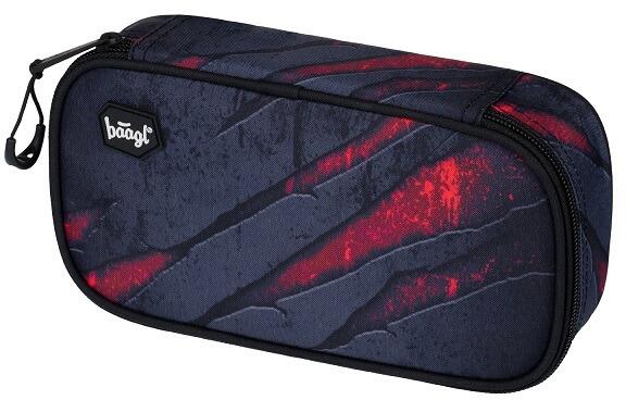 Baagl XL ovális tolltartó - Lava A szürkés fekete színvilágú nagy méretű tolltartón láva szerű tűzpiros minta. Az elsősorban fiúknak tervezett tolltartó praktikus választás, nagyobbaknak kifejezetten előnyös rendszerezésű. Az ovális tolltartó cipzárral záródik. Belseje kék alapon mintás. Rendelkezik egy kihajtható belső füllel, rajta rögzítőpántok vannak óraren
