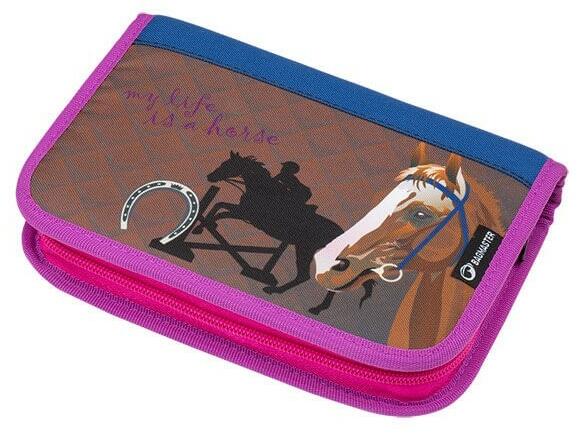 Egyszerű lány tolltartó, egy füllel, töltetlen. Belül szürke bélés, rózsaszín szegéllyel bélelt. 27 gumi fogantyút tartalmaz az írószerekhez és további 3 gumi fogantyút egyéb iskolai kellékekhez (radír, ceruzahegyező stb. ). Lebenyek átlátszó fóliával, ütemezéssel. Nyomtatás nagyon jó minőségű átviteli technikával. Méretek: 20,5 x 13,5 x 4 cm Gyártó: Bagmast