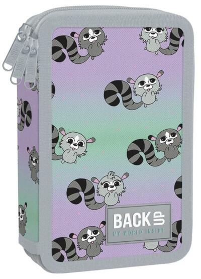 A BackUp felszerelt 3 emeletes tolltartó - Racoon teljes felszereltséggel kapható. A cuki mosómacikat ábrázoló mintákkal és a színes háttérrel rendelkező tolltartó az iskolás lányoknak készült. A különleges tolltartó tartalma: 1 db golyóstoll, 1 db grafit ceruza, radír, hegyező, vonalzó, 9 db színes ceruza, 18 db filctoll. A BackUp tolltartóval az asztalon minden tanóra