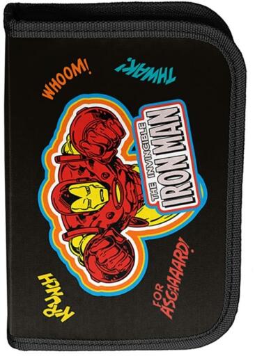 A Marvel - Vasember Ironman felszerelt tolltartó teljes felszereltséggel kapható. A két, oldalra kihajtható fül rejti az 1 db grafit ceruzát, az 1 db golyós tollat, a 9 db színes ceruzát, a 7 db filctollat, radírt, hegyezőt és 2 db vonalzót. Elejét a menő szuperhősök ábrája díszíti.