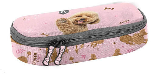 Kutyás ovális tolltartó - Hi (PP24PU-013) belseje egyterű, praktikus cipzáras zseb is található benne, így elfér a tolltartóban az összes írószer, amire az iskolásoknak szüksége van. Aranyos, kutyás mintájával az iskolatáskák trendi kiegészítője.