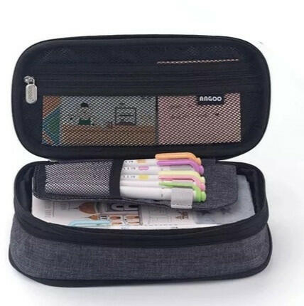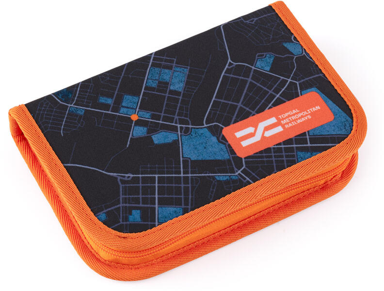Egyemeletes tolltartó két kihajtható füllel. A gumis tárhelyeknek köszönhetően összesen huszonegy toll, ceruza és filctoll fér el benne. A három szélesebb fogantyúban vonalzó, körző vagy olló is elfér. Két nagyobb tárhely a radír és a ceruzahegyező számára. A tolltartó bélelt, így megbízhatóan védi az összes íróeszközt. Minőségi cipzárral záródik, nagy, erg