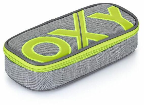 Oxy márkájú szögletes cipzáras tolltartó belső cipzáras és nyitott zsebbel, középen füllel, melynek mindkét oldalán gumipántok találhatóak. A mélyített belső részbe ömleszthetőek az írószerek. Remek választás kamaszoknak, lánynak, fiúnak egyaránt. Mérete: 20,5x5x10 cm. Anyag: poliészter. Szín: szürke/neon zöld.