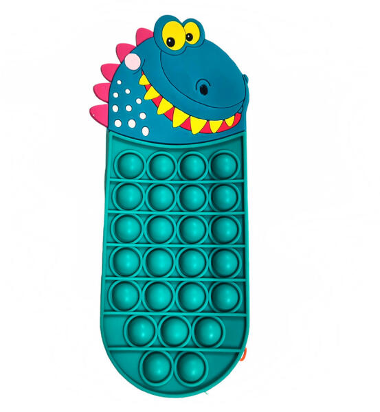 Praktikus és szerethető Pop It Dínós mintás tolltartó , ami játékos stresszoldó és írószertároló egyben. Tartós és könnyen tisztítható szilikonból készült, cipzárral záródik. Mérete 20 cm. Lepd meg gyermekedet az iskolakezdésére vagy otthonra egy igazán különleges és praktikus eszközzel, amivel biztosan nagy sikert aratsz majd. A 20 cm-es Pop It Dínós mintás tol