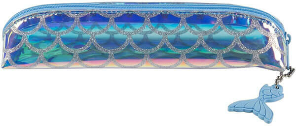 Igazi csajos ceruzatartó / neszesszer a sellő kollekcióból. Tengerkék színvilágú, csillogó ezüst halpikkelyes mintával. A cipzárján halacska húzóka található. Ideális tollak, ceruzák, vagy kozmetikai eszközök, sminkeszközök tárolására. Kényelmesen elfér egy kisebb táskában. A cipzáras tároló mérete: 20x3,5x5,5 cm.