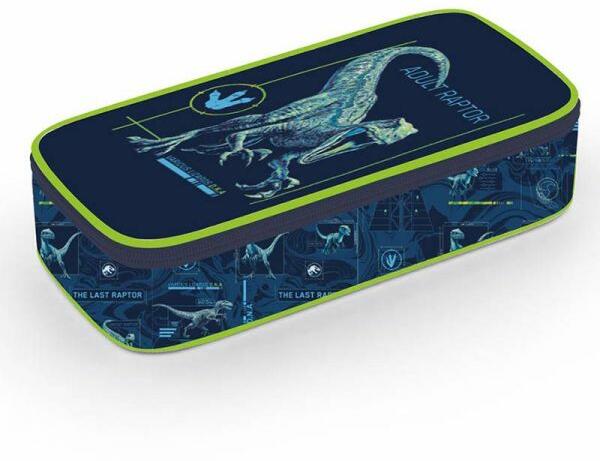 Jurassic World dinoszaurusz mintájú szögletes cipzáras tolltartó belső cipzáras és nyitott zsebbel, középen füllel, melynek mindkét oldalán gumipántok találhatóak. A mélyített belső részbe ömleszthetőek az írószerek. Dinós tolltartó mérete: 21,5x5,5x10 cm. Anyag: poliészter. Állítsd össze iskolai felszerelésed a OXY Bag Jurassic World kollekciójából >>