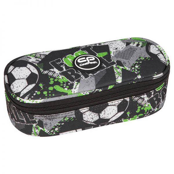Cool Pack márkájú tolltartó focis mintával, nagyoknak. Az ovális formájú cipzáras tolltartó közepén van egy klapni, melynek mindkét oldalán 5-5 gumipánt található ceruzáknak, tollaknak. Az egyterű részébe bedobálhatóak az írószerek, kiegészítők. A fiús tolltartó üres, a képen látható eszközök illusztrációk. Mérete: 23x5x9 cm. Szín: fekete/zöld, focilabdás