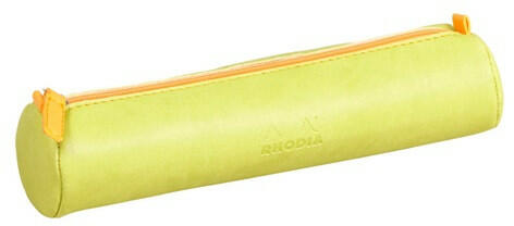 Tolltartó Clairefontaine Rhodiarama 21,5x5 cm hengeres, műbőr, ánizszöld Olasz műbőrből készült, prémium minőségű hengeres tolltartó Méret: 21,5 x 5 cm Dombornyomott Rhodia logóval Elefántcsontszínű belső béléssel Narancssárga varrással és cipzárfogóval, mely szintén műbőrből készült