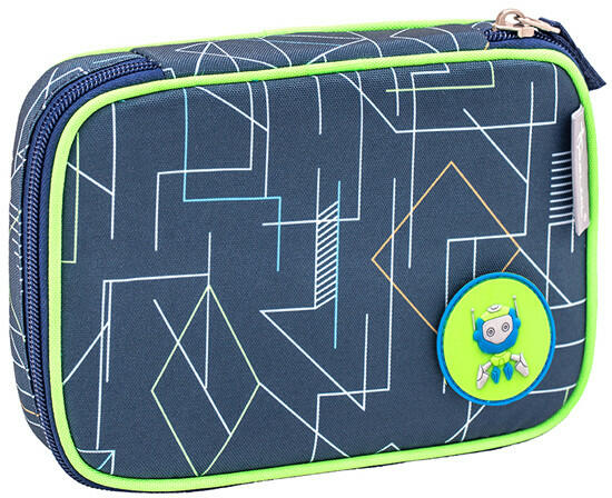 Ez az egyemeletes tolltartó két kihajtható füllel elegendő helyet biztosít az írószereknek (21 kicsi, 3 szélesebb, 2nagy gumis tárhely). Az osztófal átlátszó fóliái mögött órarend vagy akár puska helyezhető el :). A tolltartó bélelt, megvédi az írószereket. Minőségi cipzárral záródik, nagy, ergonomikus fogantyúkkal van ellátva akönnyű manipuláció érdekében. E