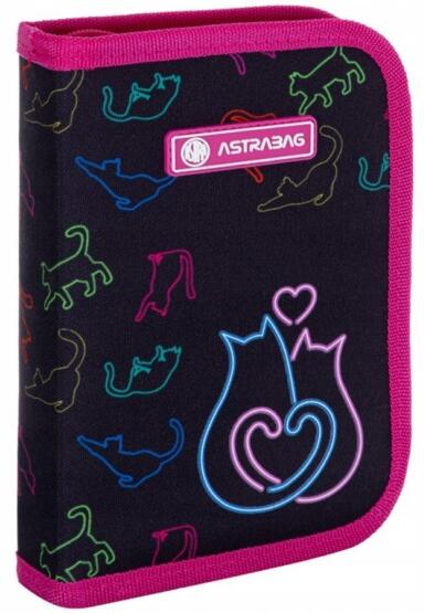 A LOVE cicás kihajtható tolltartó belsejében két kinyitható fül található, melyeken az iskolában szükséges összes eszköznek (ceruza, toll, radír, hegyező, vonalzó) találsz helyet. A fekete alapszínű tolltartó alsó és felső részét egyaránt színes cicaminták díszítik. Pakold tele ceruzákkal és kezdődhet az iskola!