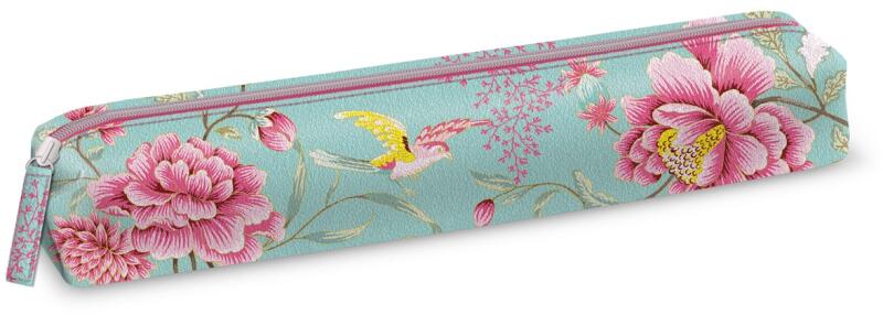 Keskeny tolltartó elegáns virágmintával Egy rekeszes, könnyű, puha plüss anyagból Cipzárral nyitható-zárható Kézzel tisztítható Méret: 205x40x40 mm