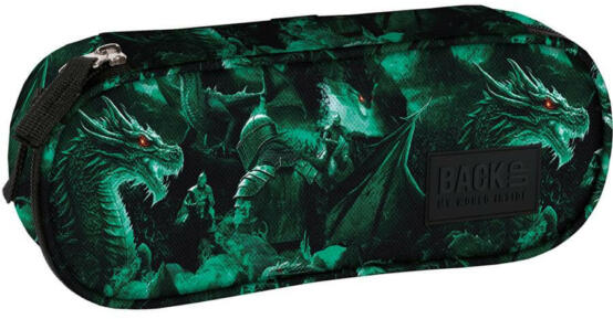 BackUp Fiús ovális tolltartó - Sárkány legenda egy hatalmas sárkánnyal és a vele harcoló lovaggal van díszítve. Egyterű belsejében praktikus felhajtható fül is található, melynek egyik oldalán kis cipzáras zseb van, másikon gumifülek tollnak, ceruzának. Az összes írószer elfér benne, amire az iskolában szükséged lehet.