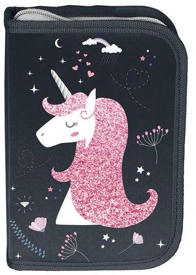 Az Unikornis kihajtható tolltartó - kék-rózsaszín (PP24UC-P001BW) tolltartón cuki, unikornisos minta látható. A tolltartó belsejében két kihajtható fül található, ezeken lehet a sok-sok ceruzát, filctollat, radírt a gumis fülecskék segítségével elrendezni. Minden szükséges iskolai eszköznek megtalálod benne a helyét. Hozzá illő iskolatáskával és tornazsákkal össze