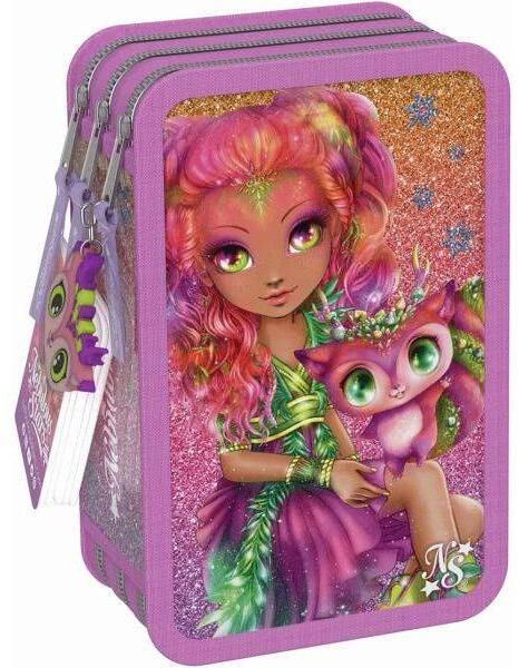 Egy emeletes iskolai tolltartó lányoknak, nem tölltöt, egy kihajtható füllel. Belül szürke bélés, szürke szegéllyel bélelve. 20 gumifogantyút tartalmaz az íróeszközökhöz és további 4 gumifogantyút más iskolai segédeszközökhöz (gumi, hegyező stb. ). Fedél átlátszó fóliával, az ütemezéssel együtt. Méretek: 20,5 x 13,5 x 4
