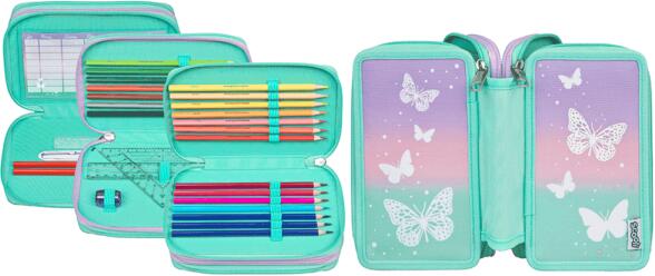 3 emeletes tolltartó lányoknak a legtöbb írószer és iskolai kellék tárolására alkalmas. Lányok tolltartója a következőket tartalmazza:Az első réteg a következőket tartalmazza: 8 zsírkréta radírt kínál még 15 gumiszalagot a ceruzákhoz és 2 kis gumiszalagot például a tollpatronokhoz. A tökéletes színben összehangolt kialakítás az iskolatáskával vagy tornazsákkal.