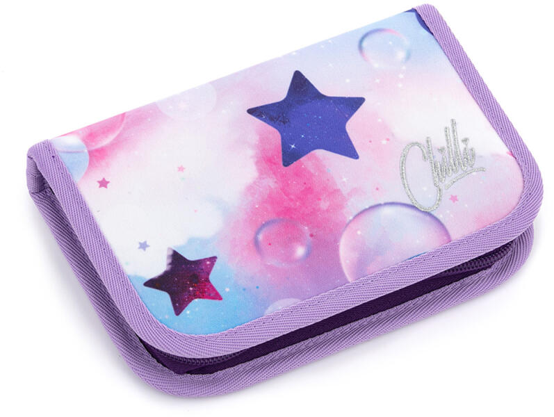 TOPGAL kihajtható tolltartó - In The Sky Csillagos tolltartó A minőségi tolltartó rózsaszín-lilás színvilágú, rajta csillagok vannak. A kihajtható tolltartó cipzárral záródik. A tolltartó belső anyaga halványszürke. A rajta lévő mintát színes ceruzával ki lehet színezni! Összesen 26 gumipánt van rögzítéshez a tolltartóban ceruzának, tollnak, vonalzónak, radírnak