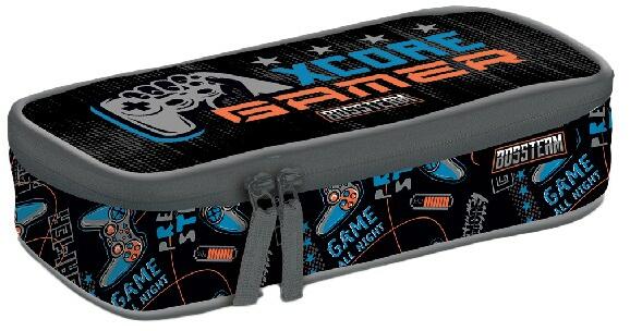 GAMER kontroller mintás bedobálós tolltartó nagyoknak, felsősöknek, mely középen kétoldalas gumipántos elválasztóval rendelkezik, így a rajta lévő 10 gumipánt alá rendszerezhetőek az írószerek. Az ovális formájú tolltartó dupla cipzáras. Belül egyterű, középen egy kétoldalas gumipántos elválasztó található a ceruzák és írószerek rögzítésére, valamint egy