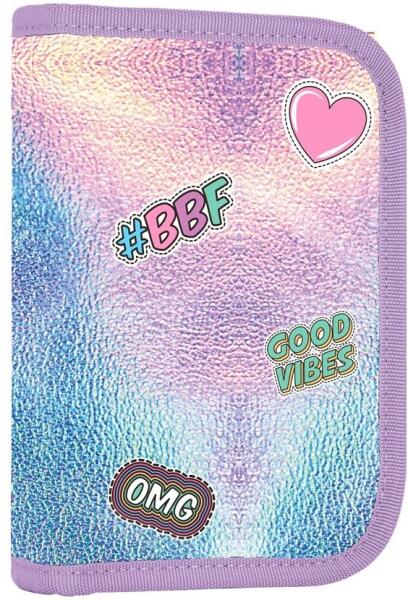 Tolltartó lányoknak 2 füllel, üres. 25 db gumihurkot tartalmaz az írószerek tartására. A belső szárnyakon átlátszó fólia található az órarendhez. Méret: 205x140x35mm, Súly: 0,2kg