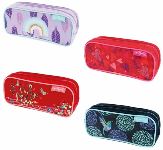 Herlitz márkájú kétrekeszes, bedobálós tolltartó piros színben, virágos - kolibri madaras mintával. A lányos kétrekeszes tolltartó mérete:21x6,5x9 cm. Szín: piros. Minőségi német Herlitz tolltartó.