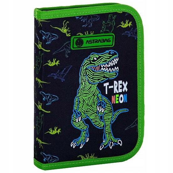 Astra emeletes dínós tolltartó felszerelt - T-REX Neon Felszerelt tolltartó A dinoszauruszos tolltartó neon színű T-Rex-szel mintázott, élénk színe világít a sötétben. Írószerekkel felszerelt emeletes tolltartó fiúknak. A két szintes tolltartó cipzárral záródik. A belső rész nem mintázott, a ceruzák pedig gumipántok segítségével rendszerezhetőek. Az emeletes tollta