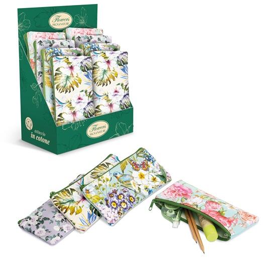 Szögletes zippzáras tolltartó Alapanyag: pamut Méret: 10x22 cm 4 féle mintával (a minta nem választható)