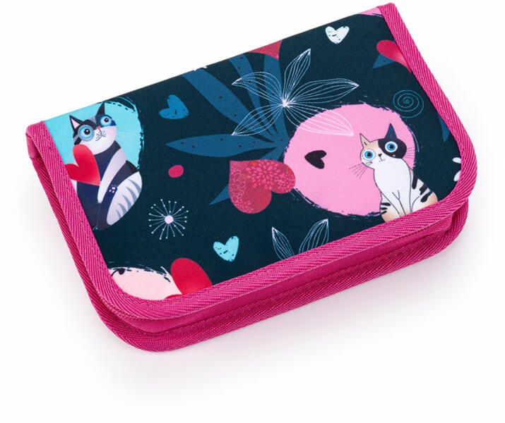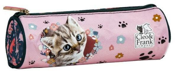 Cleo és Frank cicás henger tolltartó - Cutie Rekeszes tolltartó lányoknak A rózsaszínű Cleo és Frank cicás tolltartó elején egy cica kukucskál, körülötte virágokból álló füzér látható. A tolltartó mintája apró virágmintával és tappancs nyomokkal egészül ki. Praktikus írószertartóba minden írószer belefér, amire az iskolában szükség lehet. A nagy rekeszbe a