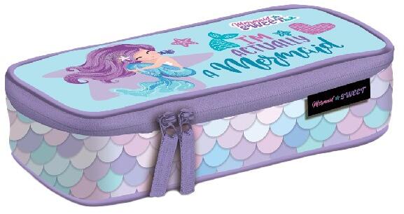 Bájos sellőlányos mintájú bedobálós tolltartó nagyoknak, felsősöknek, mely középen kétoldalas gumipántos elválasztóval rendelkezik, így a rajta lévő 10 gumipánt alá rendszerezhetőek az írószerek. Az ovális formájú tolltartó dupla cipzáras. Belül egyterű, középen egy kétoldalas gumipántos elválasztó található a ceruzák és írószerek rögzítésére, valamin