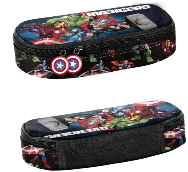 Avengers ovális tolltartó SHIELD - Paso Bosszúállók tolltartó fiúknak A divatos Avengers ovális tolltartó SHIELD - Paso minden fiú számára ideális iskolai felszerelés. A vagány tolltartó mintázatán a legyőzhetetlen Bosszúállók szuperhősök láthatók: Vasember, Amerika kapitány, Thor és Hulk. Ismétlődő elem Amerika kapitány pajzsa. Praktikus és minőségi design iskol