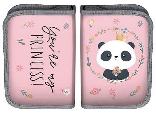 Pandás kihajtható tolltartó PASO - Princess Tolltartó elsős lányoknak Cuki pandás minta, virágok és királyi korona a pandamaci fején. A pasztell szürke és rózsaszín kihajtható tolltartó romantikus hangulatú, kis hercegnőknek készült. Első osztályosok részére is ideális választás a Paso tolltartó, mert könnyen kezelhető, és átláthatóak benne az írószerek. Egyetl