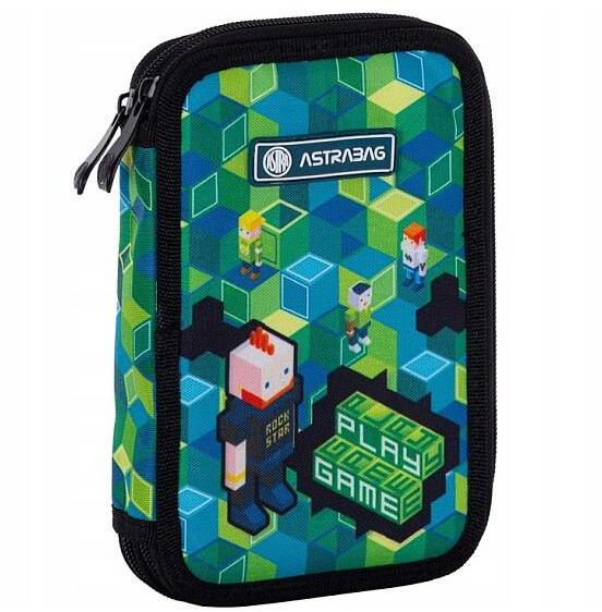 Astra gamer emeletes tolltartó - Rock Divatos pixel kockákkal mintázott emeletes tolltartó fiúknak, ami a gamereknek kedves Minecraft játékra emlékeztet. Az elején egy rock star karakter látható. A két szintes tolltartó cipzárral záródik. A belső rész nem mintázott, a ceruzák pedig gumipántok segítségével rendszerezhetőek. Az emeletes tolltartó belsejében 29 db írószer