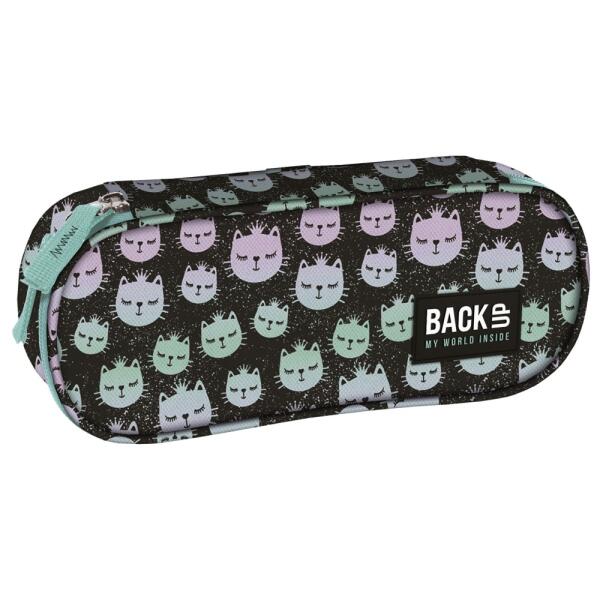 Türkiz és rózsaszín bájos cicák gyűltek össze a cicarajongó lányok kedvéért. A fekete alapon összefonódó rózsaszín, lila és türkiz színek rendkívül bájos és finom kompozíciót alkotnak. A türkiz cipzárral záródó egyrekeszes tolltartó vonzó dekorációja mellett praktikus is, mert jól áttekinthetően elférnek benne a szükséges írószerek. A BackUP egyrekeszes t