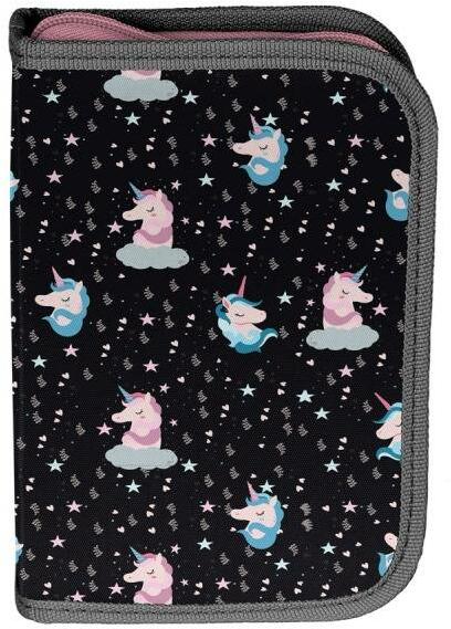 Unikornisos kihajtható tolltartó felszerelt STARS - Paso Unikornis tolltartó lányoknak A minőségi felszerelt tolltartó fekete, világoskék és rózsaszín színeivel elsősorban a lányoknak lesz remek kiegészítő az iskolai felszereléshez. Mintázatán unikornisok és apró csillagok tűnnek fel. A kihajtható tolltartó praktikus kialakítású, könnyen kezelhető, így első osztál