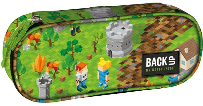 BackUp ovális tolltartó - Game LEVEL A Minecraft számítógépes játék iránt rajongók részére készült ezt a szuper tolltartó, melyen Minecraft hangulatban folyik a játék. Minden írószer rendszerezhetően belefér, amire az iskolában szükség lehet. Az ovális tolltartó dupla cipzárral záródik. Belseje fekete színű. Rendelkezik egy belső füllel, egyik oldalán cipzáras ki