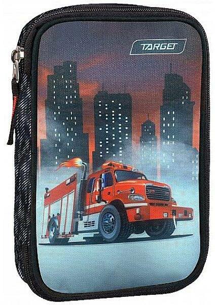 TARGET többszintes tolltartó felszerelt - Firetruck Terepmintás tolltartó fiúknak A nagy méretű tolltartón piros tűzoltóautó látható. A Target többszintes tolltartó praktikusan egy cipzárral nyitható, benne lapozható fül, mely mindkét oldalán ceruzatartó gumipánt segíti a ceruzák elrendezését. A tolltartóban a praktikus cipzáros zseb remek helye lehet az apró kincsekn
