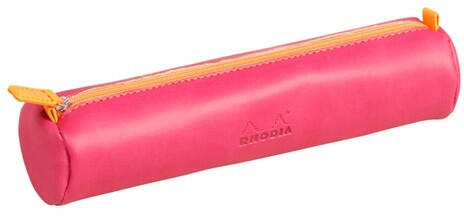 Tolltartó Clairefontaine Rhodiarama 21,5x5 cm hengeres, műbőr, málna Olasz műbőrből készült, prémium minőségű hengeres tolltartó Méret: 21,5 x 5 cm Dombornyomott Rhodia logóval Elefántcsontszínű belső béléssel Narancssárga varrással és cipzárfogóval, mely szintén műbőrből készült
