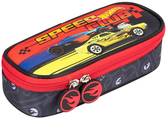 Hot Wheels ovális tolltartó - Speed Club Rekeszes tolltartó fiúknak Ezt a menő bedobálós tolltartót a nagyobb gyerekeknek tervezték, egy rekeszében minden írószer együtt tárolható. Vagány versenyautós mintáját a Hot Wheels pályák különleges birodalma ihlette. Az ovális tolltartó dupla cipzárral záródik. Belseje egyszínű. Rendelkezik egy belső füllel, amelynek egyik