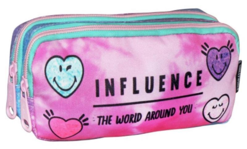 Influence 2 rekeszes ovális tolltartó Hivatalos magyarországi forgalmazótól. Leírás: Ez a különleges, Smile arcokkal és nagy Influence felirattal díszített tolltartó biztosan elnyeri majd a gyerekek tetszését. A tolltartó cipzárral nyitható és zárható, erős vászon anyagból készült a strapabíróság és a könnyű tisztíthatóság jegyében, valamint ovális alakja miatt