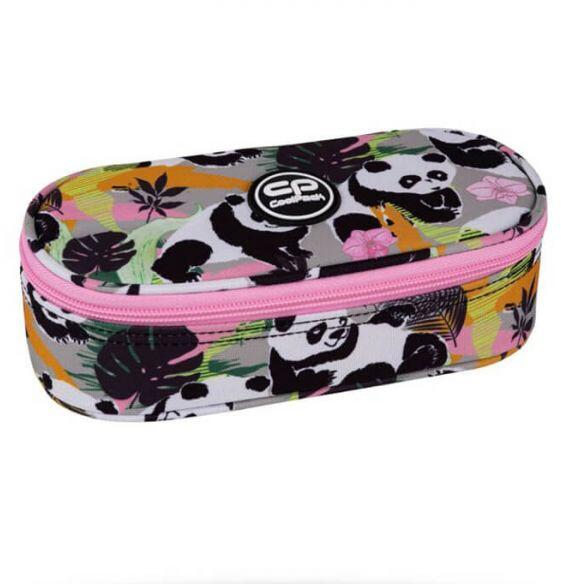 Cool Pack márkájú tolltartó nagyoknak. Az ovális formájú cipzáras tolltartó közepén van egy klapni, melynek mindkét oldalán 5-5 gumipánt található ceruzáknak, tollaknak. Az egyterű részébe bedobálhatóak az írószerek, kiegészítők. A lányos tolltartó üres, a képen látható eszközök illusztrációk. Mérete: 23x5x9 cm. Szín: zöld/rózsaszín, panda macis mintával,