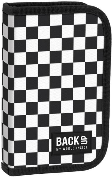A BackUp felszerelt kihajtható tolltartó - Pepita teljes felszereltséggel kapható. A két oldalra kihajtható fül rejti a 10 db színes ceruzát, 7 db filctollat, 1 db golyóstollat, 1 db grafit ceruzát, radírt, vonalzót és hegyezőt.