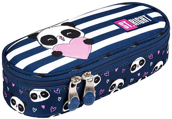 St. Right ovális tolltartó - Love Panda Egy rekeszes tolltartó lányoknak A kék és fehér mintázatú tolltartó teteje csíkos, és egy cuki panda maci pózol rajta szív alakú rózsaszín szemüvegben. A tolltartó hátoldala szintén pandás. Az elsősorban lányoknak tervezett tolltartó praktikus, a nagyobb gyerekek részére könnyedén kezelhető, előnyös kialakítású. Az ovális
