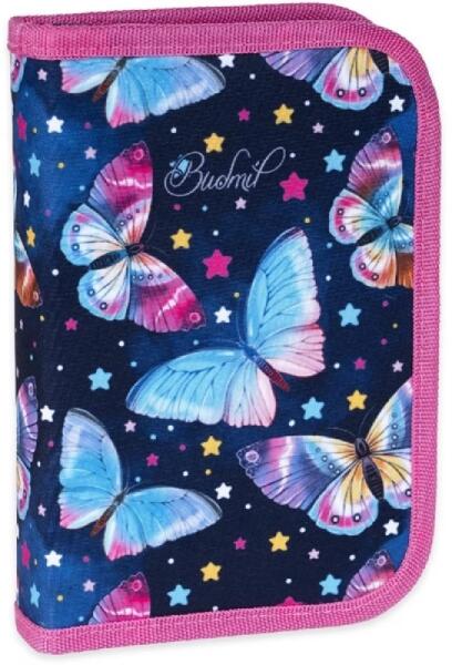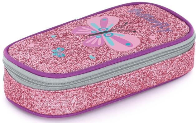 Tolltartó tollak, ceruzák, zsírkréták, filctollak és egyéb íróeszközök számára 1. és 2. osztályos tanulók számára. Iskolai tok pillangó motívummal, csillogással.